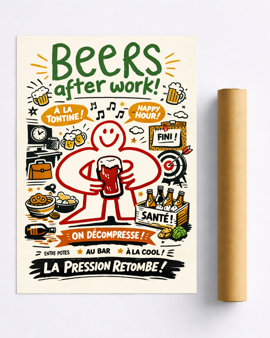 Affiche Bière Beers After Work – La Pression Retombe | Poster Apéro