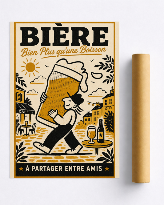 Affiche Bière Bien Plus Qu’une Boisson – Poster Vintage Bistrot