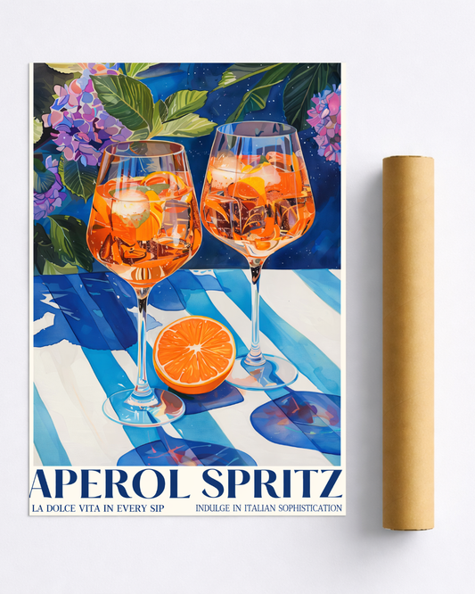 Affiche Aperol Spritz Élégante – Poster Cocktail Bleu & Orange