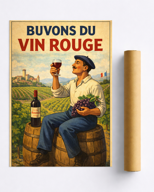 Affiche Buvons du Vin Rouge – Poster Vintage Vigneron Français