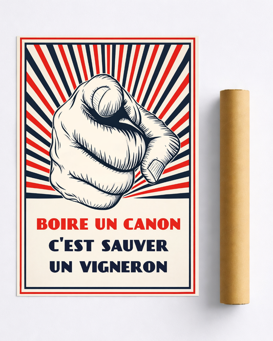 Affiche Boire un Canon c’est Sauver un Vigneron – Poster Humour Vin et Déco Apéro