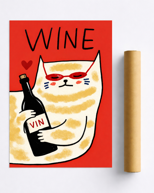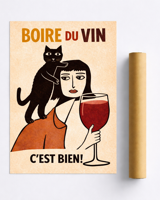 Affiche Boire du Vin C’est Bien – Poster Chat et Vin Déco Originale