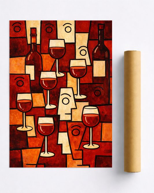 Affiche Art Vin Rouge – Poster Abstrait et Verres de Vin