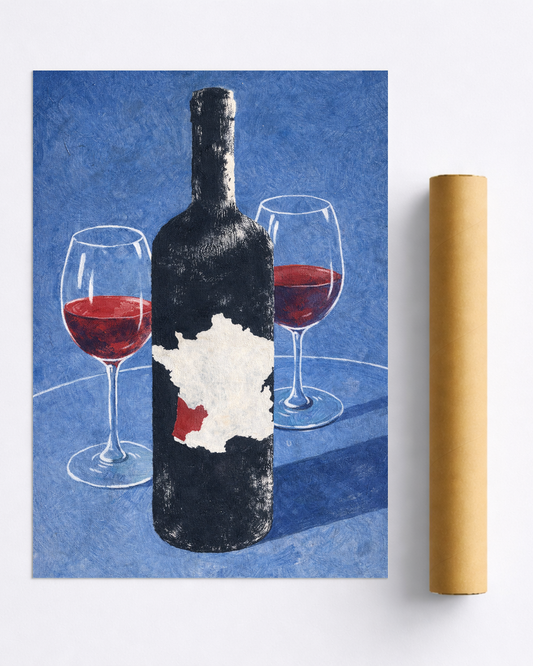 Affiche Bouteille de Vin et Verres – Poster Déco Vin Élégant