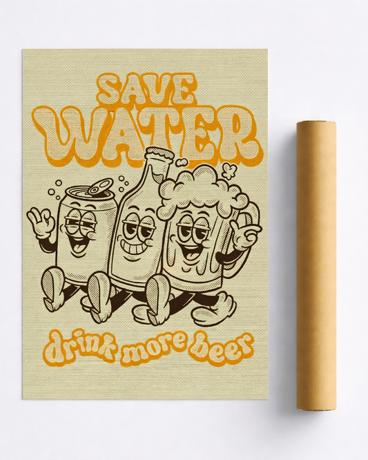 Affiche Bière Save Water Drink More Beers – Poster Humour et Déco Apéro