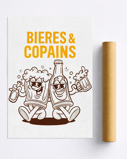 Affiche Bières & Copains – Poster Apéro Fun et Déco Bar