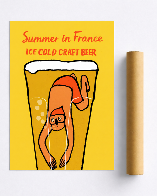 Affiche Bière Summer in France – Ice Cold Craft Beer | Poster Fun Vintage