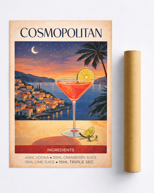 Affiche Cocktail – Poster Cosmopolitan Vintage Déco Bar